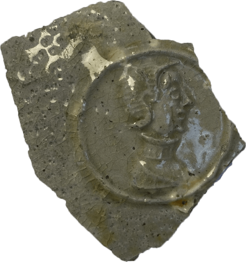 About this jug Medallion: Anthropomorph Location: Blossom St, London E1, United Kingdom Long/Lat: 51.5213912, -0.0776353 Archaeological Context: Sealed feature: An archaeological feature Site type: Urban landscape Time Period: 1650 - 1700 Date on vessel: England ? Feature description: Head with high collar and wig diameter 25mm Identifier: BLS14 [1952] Custody: Museum Custody Data: MOLA