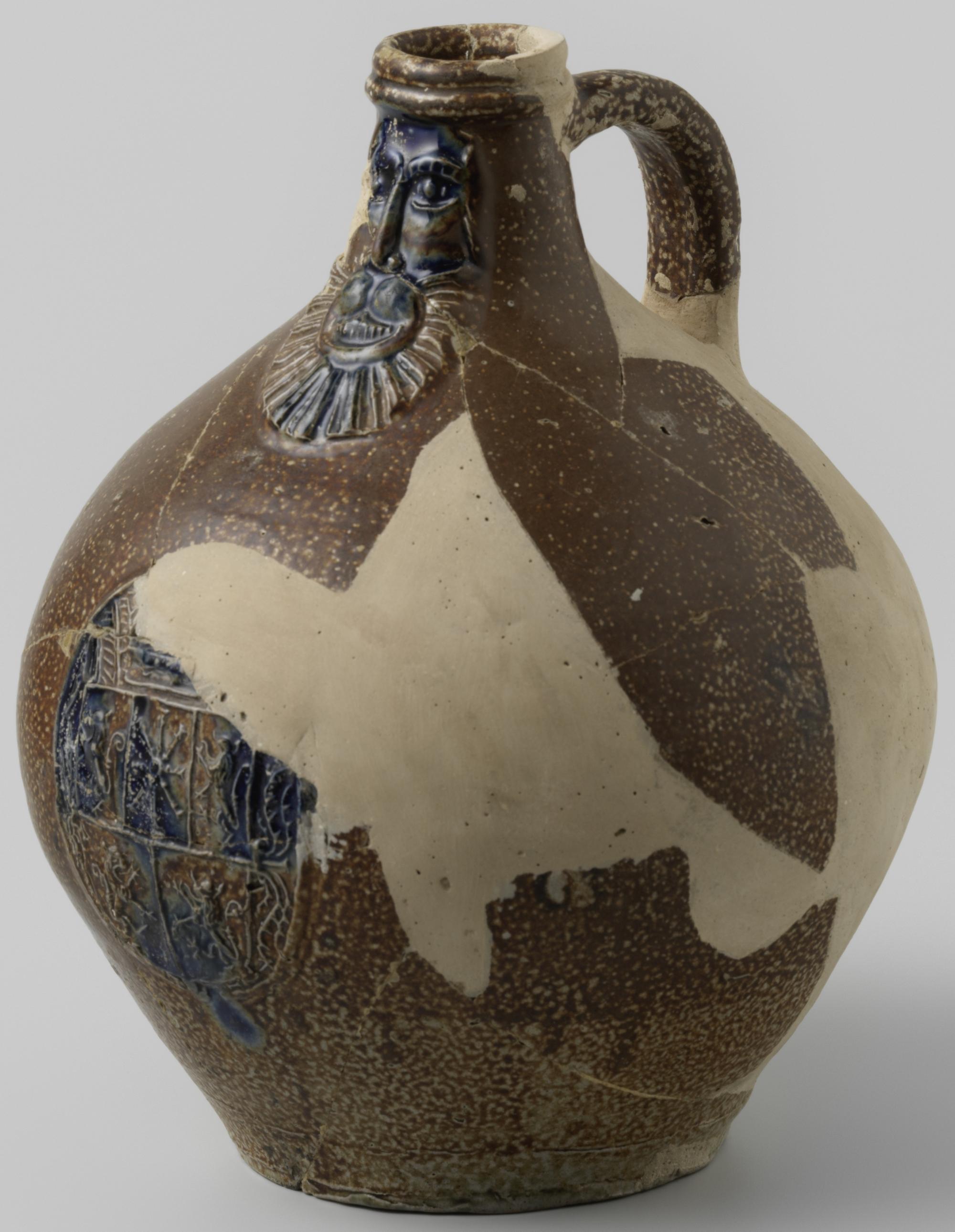 Feature description: Bartmann jug from the Dutch East India Company ship “Witte Leeuw”, 60% intact, the rest has been restored. Medallion with the coat of arms of the United Duchies of Jülich-Cleves-Berg.
