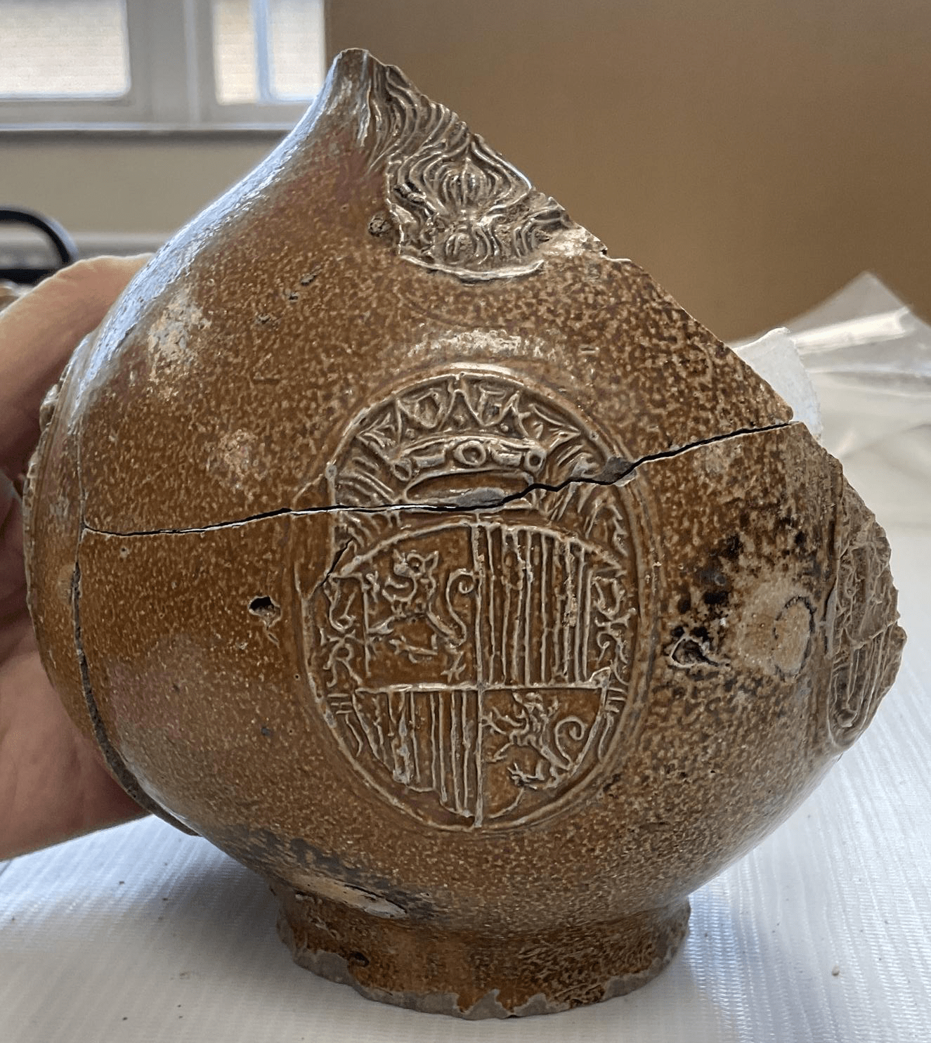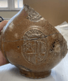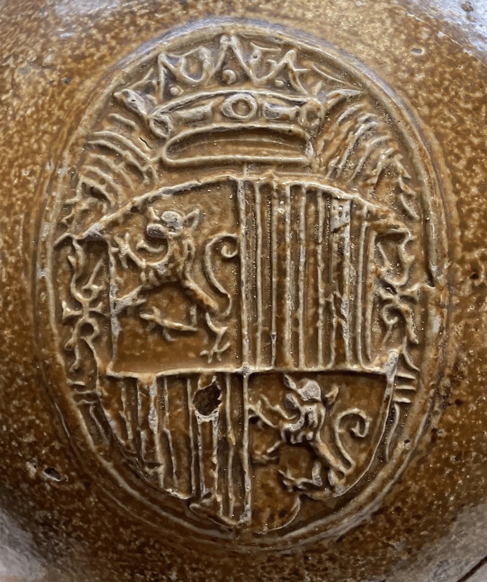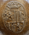 Feature description: The jug is fragmented; therefore, no height can be provided. The three medallions depict the coat of arms of Sayn-Wiggenstein