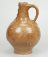 Feature description: Bartmann jug; narrow neck; salt glaze and iron engobe; band mark; spherical body; realistic mask with closed mouth. The beard diverges in curved lines and is cut round; origin: Frechen