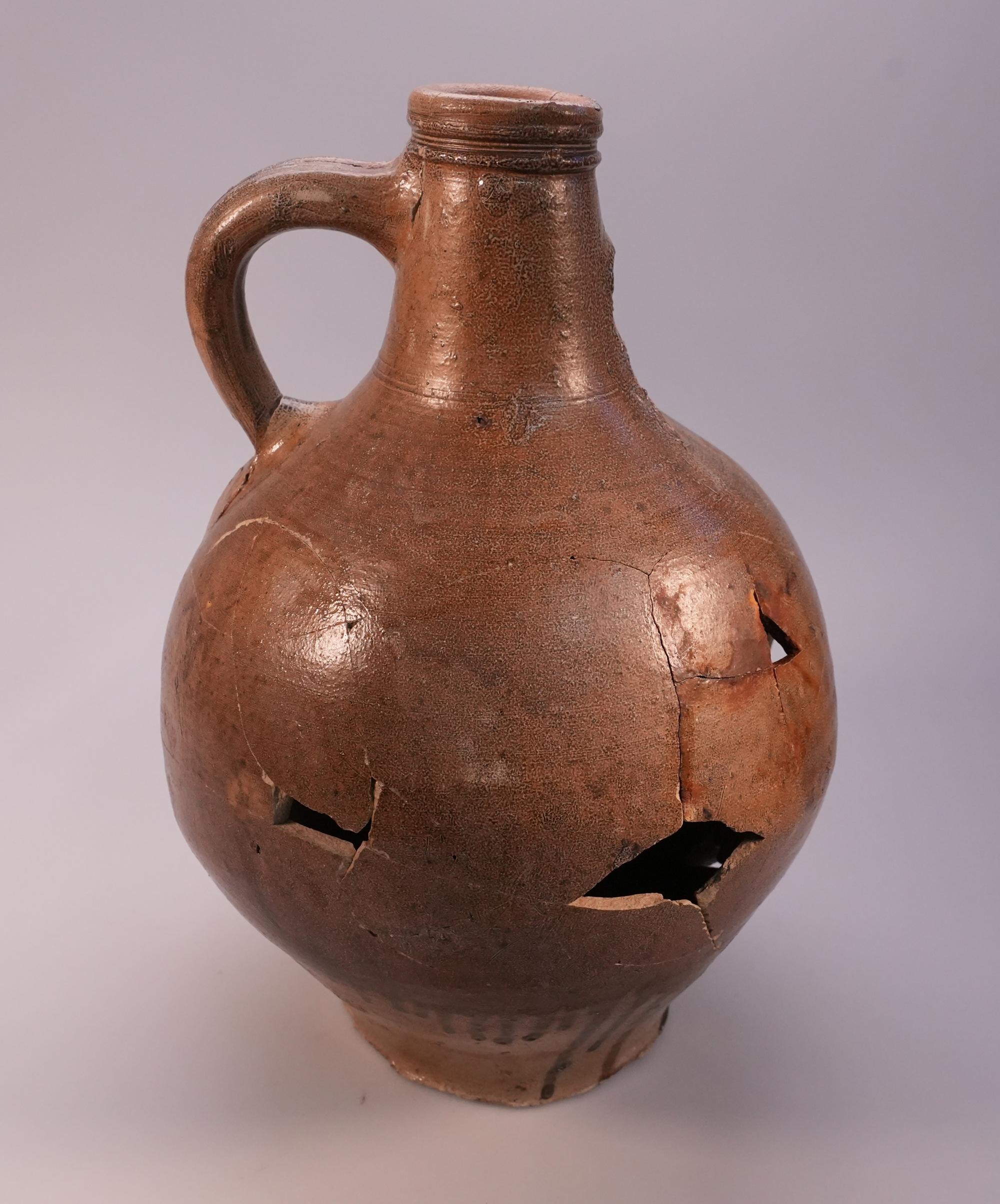 Feature description: Bartmann jug with three circles on the belly.