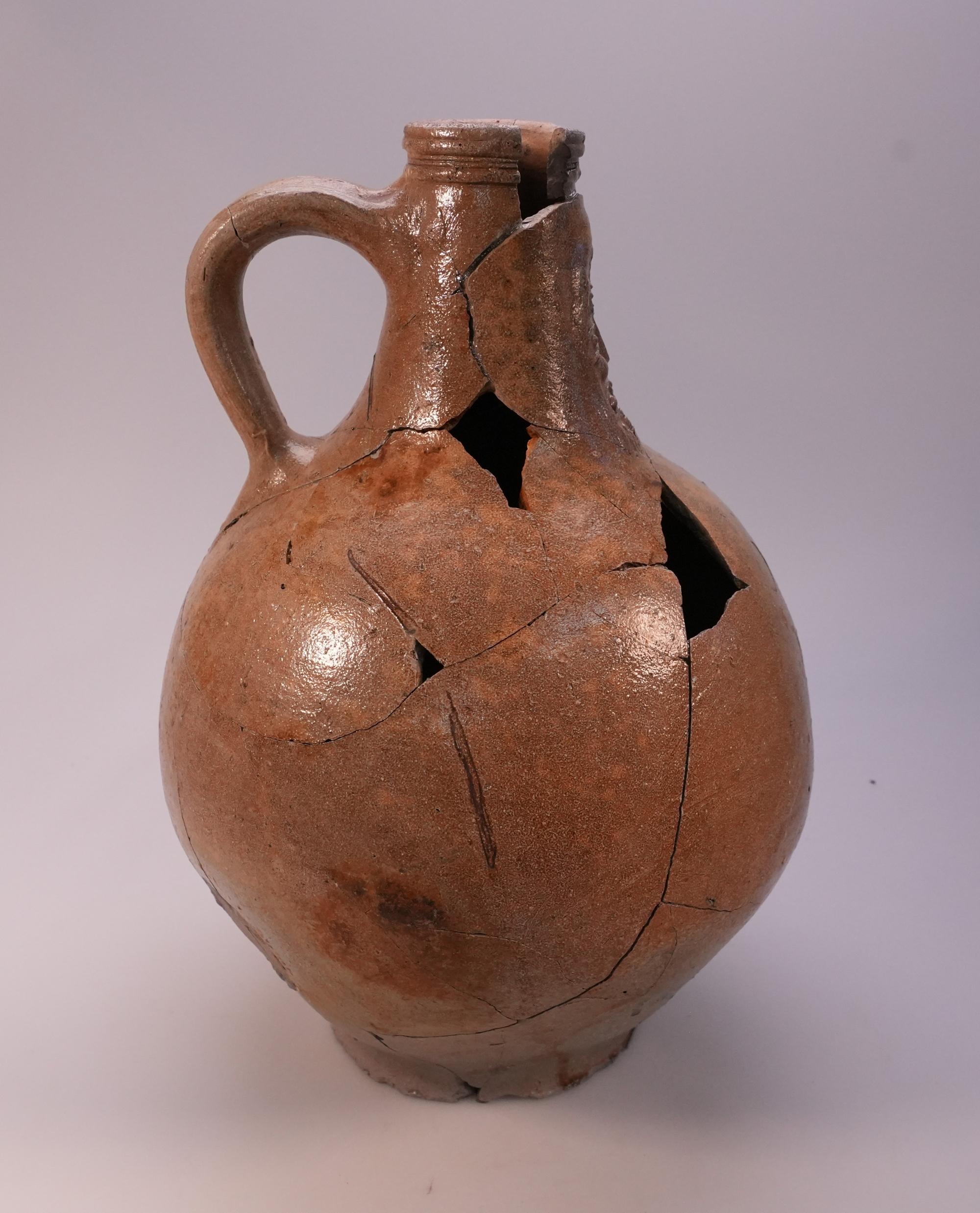 Feature description: Bartmann jug with 3 pressed circles on the belly.