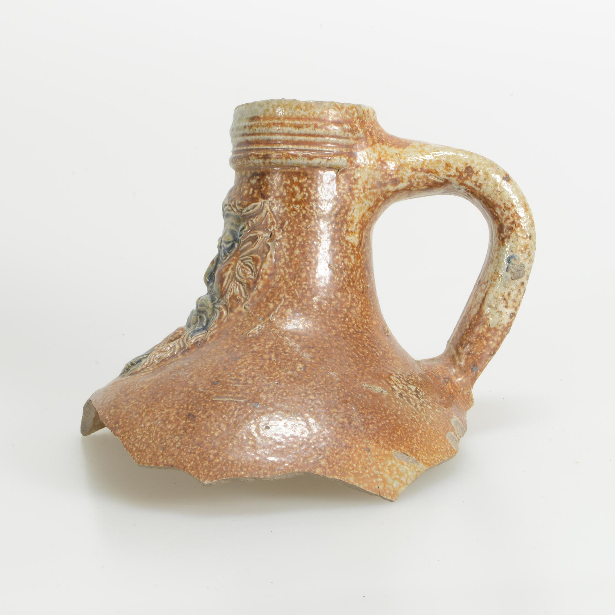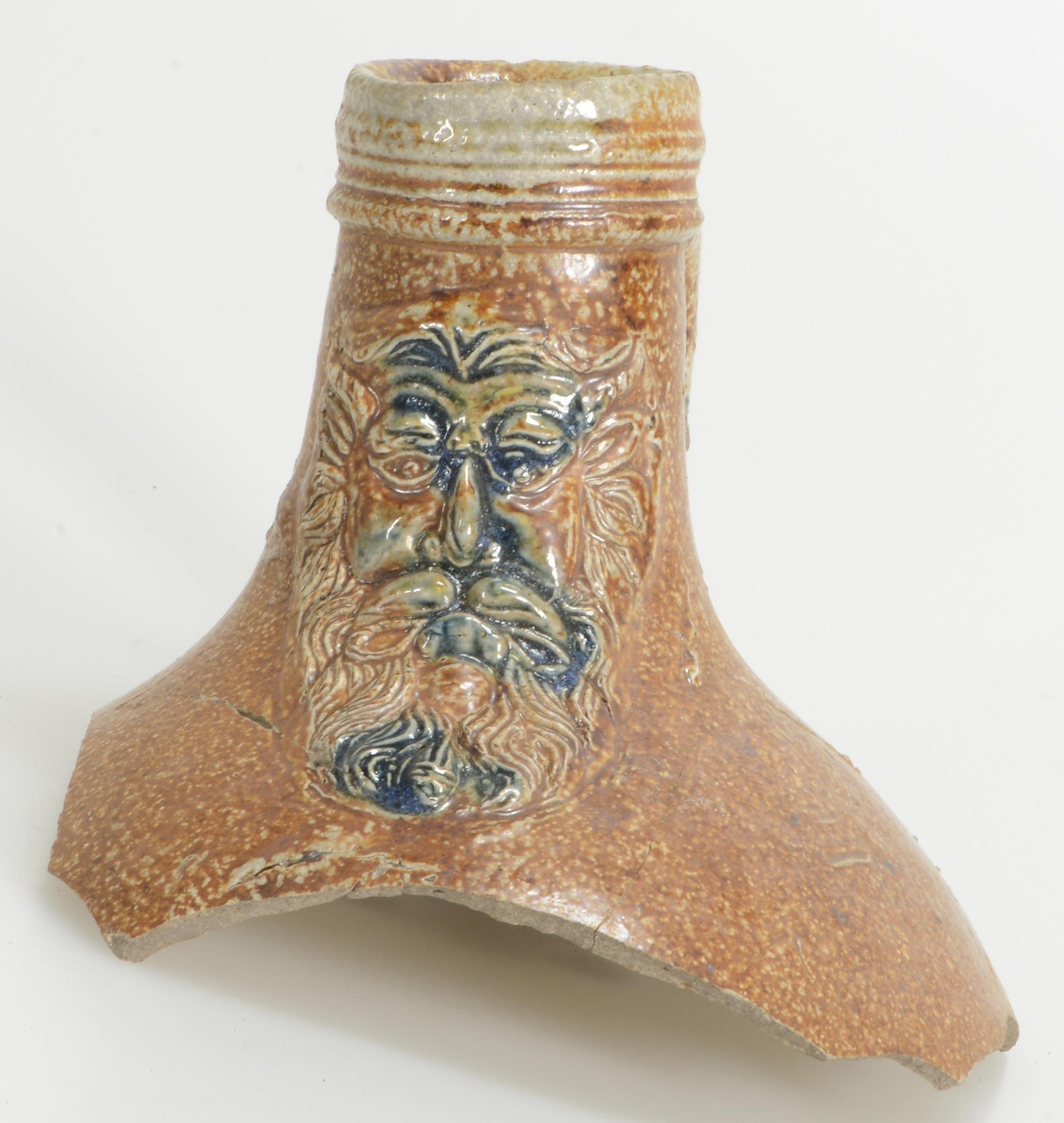 Feature description: Bartmann jug; s2-kan-32; fragment of a rounded jug with a shoulder tapering into a tall neck with a ribbed collar; provenance: Frechen