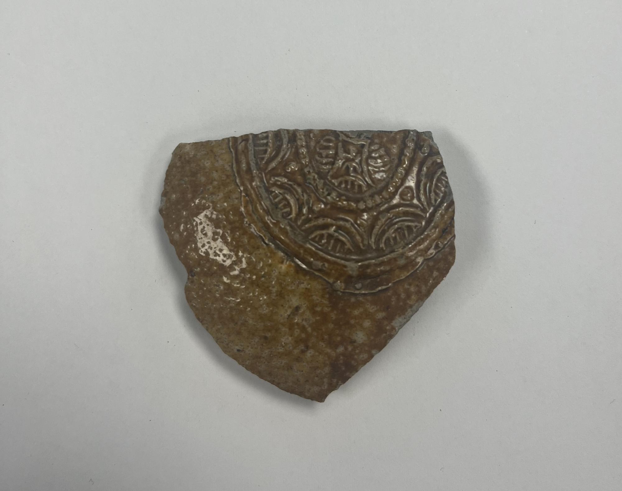 About this jug Medallion: Floral Location: Blossom St, London E1, UK United Kingdom Long/Lat: 51.5213912, -0.0776353 Archaeological Context: Sealed feature: An archaeological feature Time Period: 1575 - 1675 Feature description: Fragment of medallion only Identifier: BLS14-2232 Custody: Museum Custody Data: MOLA