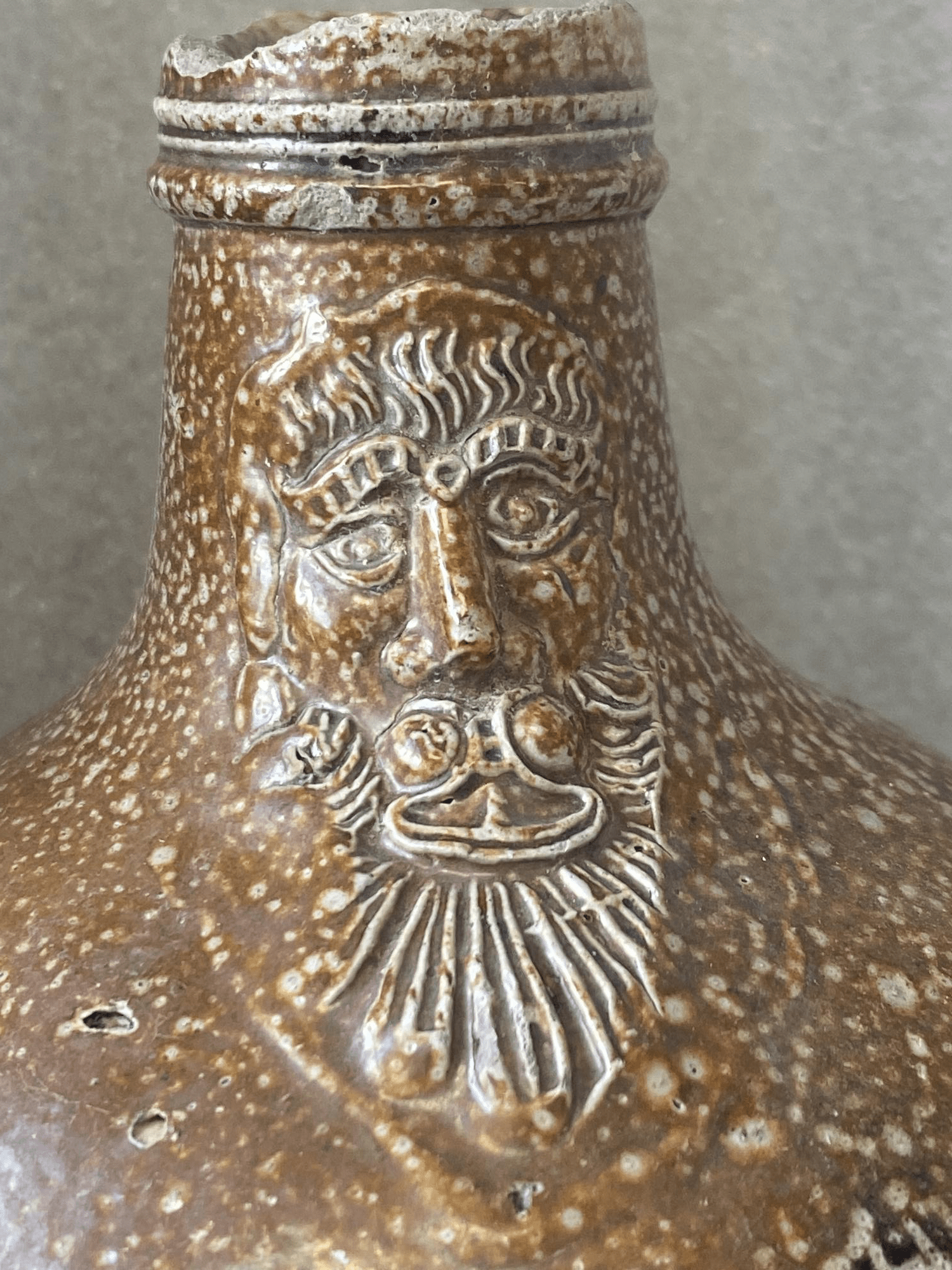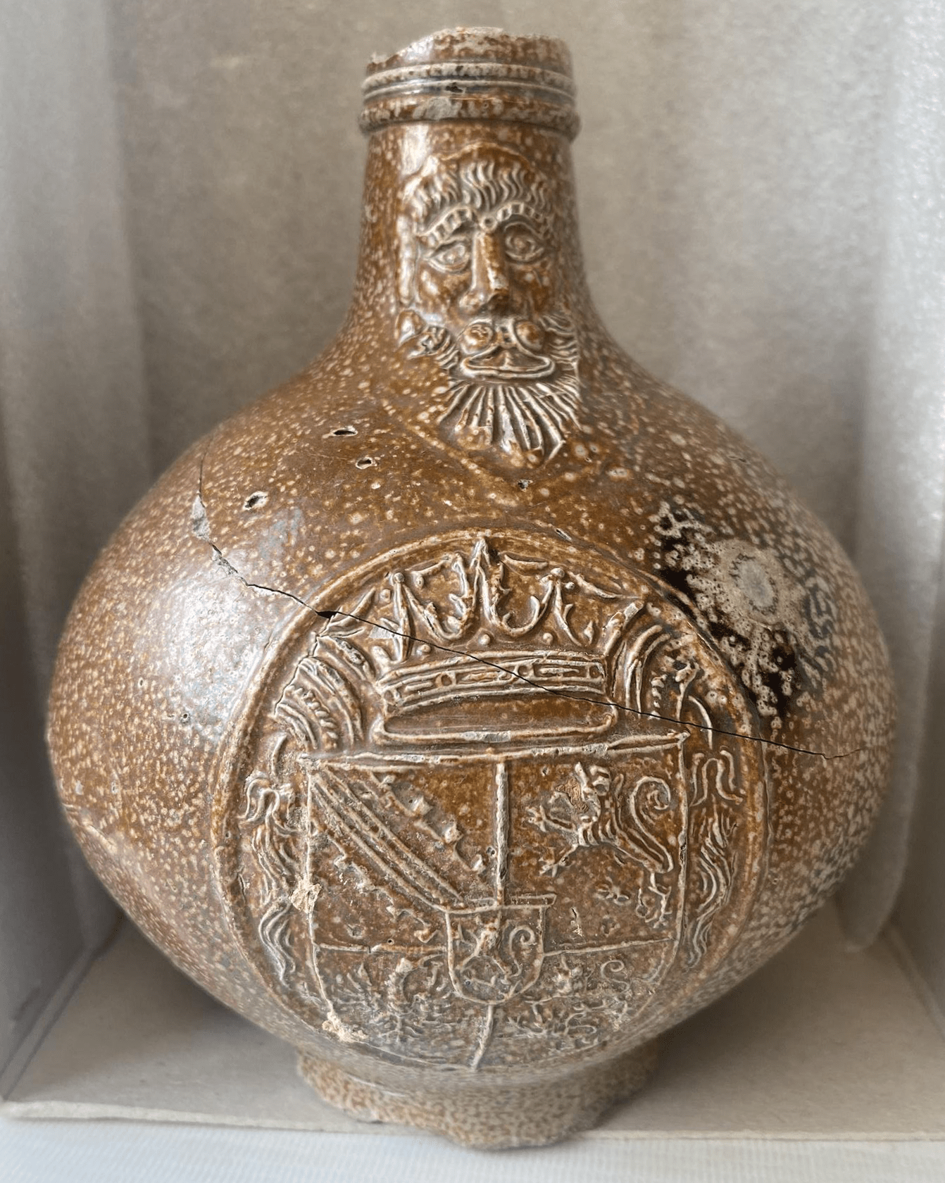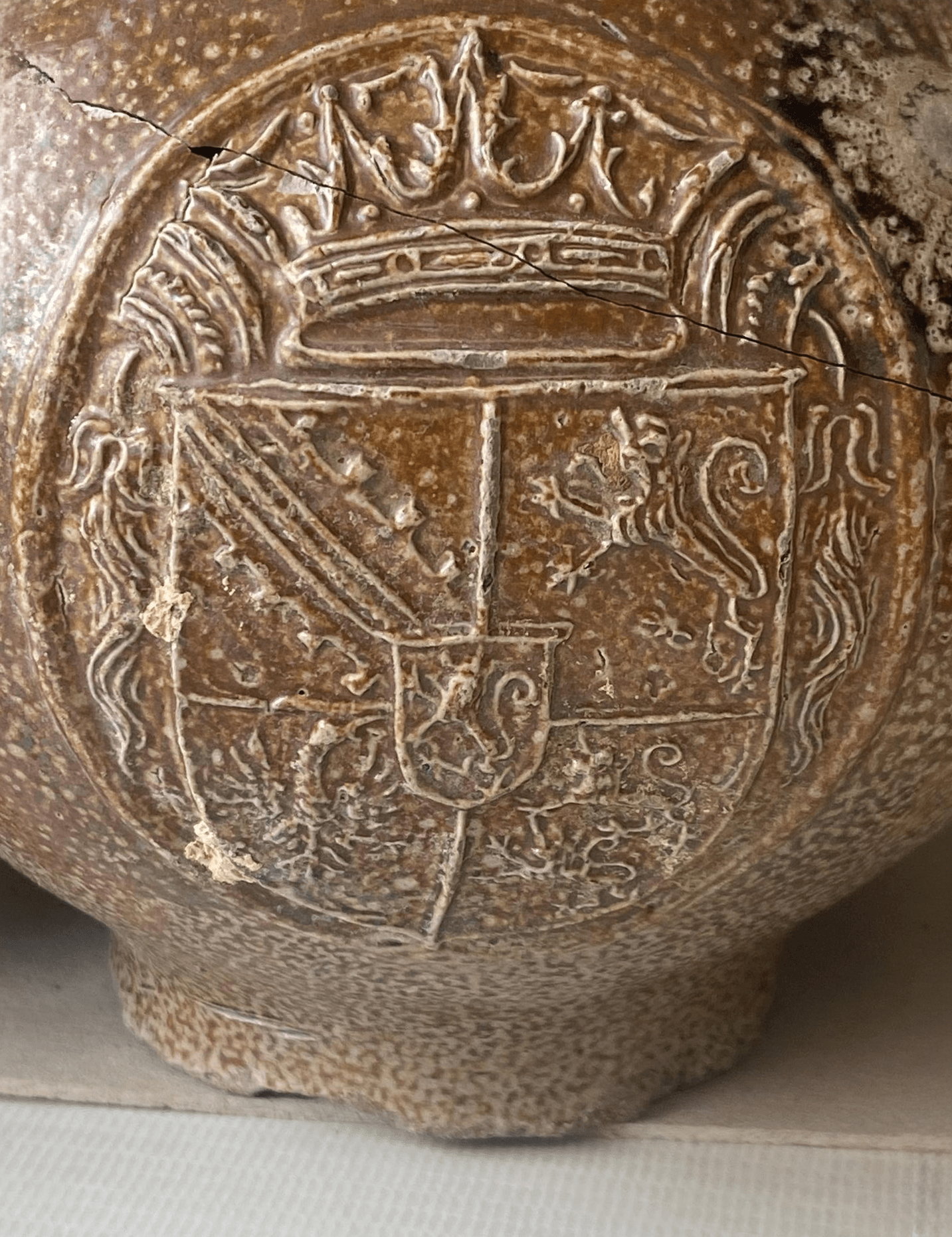 Notes: This Jug comes from a cellar on Rood Lane, excavated in 2008 -09 by MOLA. The cellar was likely sealed during the Great Fire of London in 1666. The findings made in it documented it to be part of an ale house (or tavern)