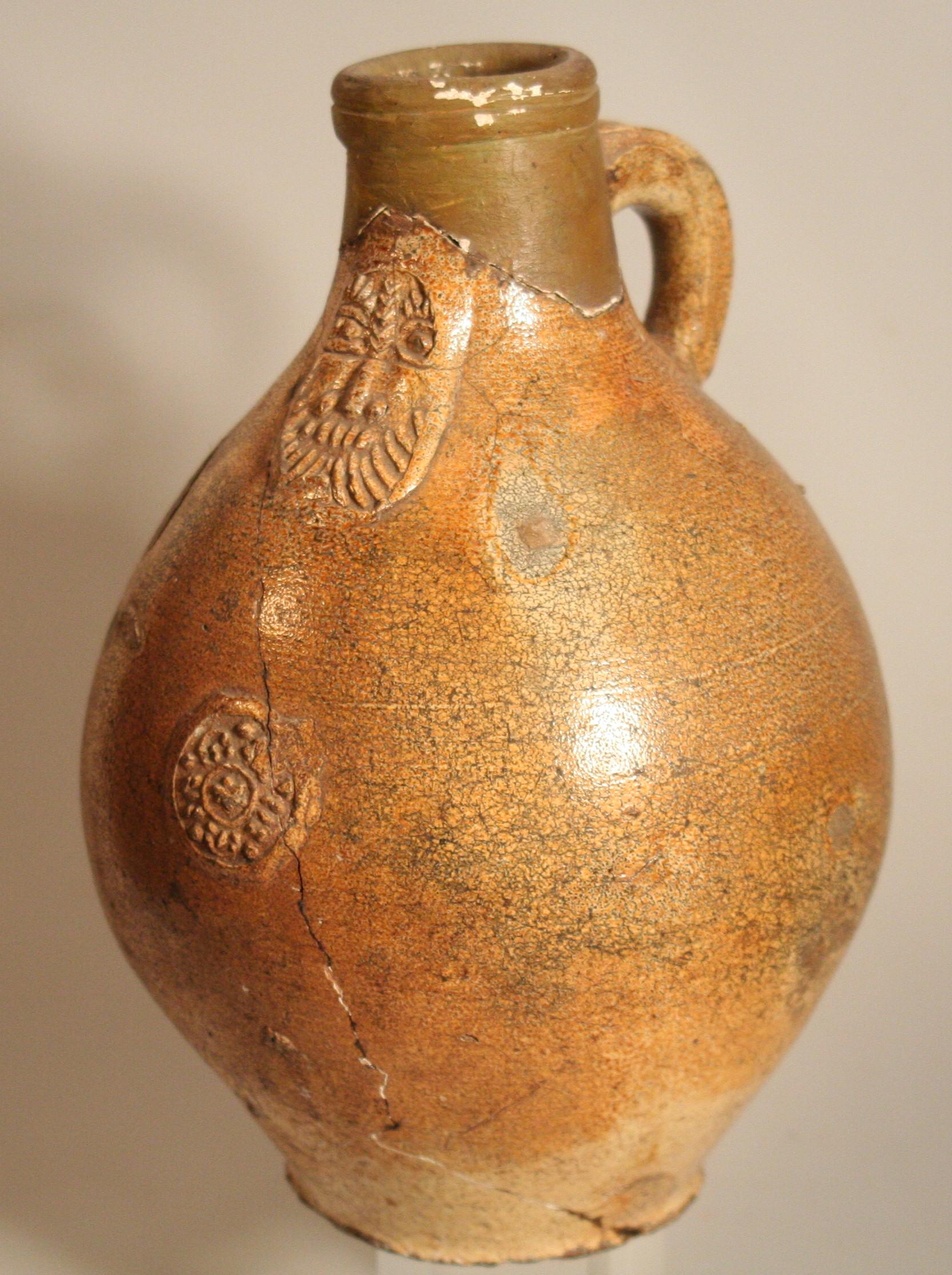 Feature description: Restored bartmann jug with one medallion