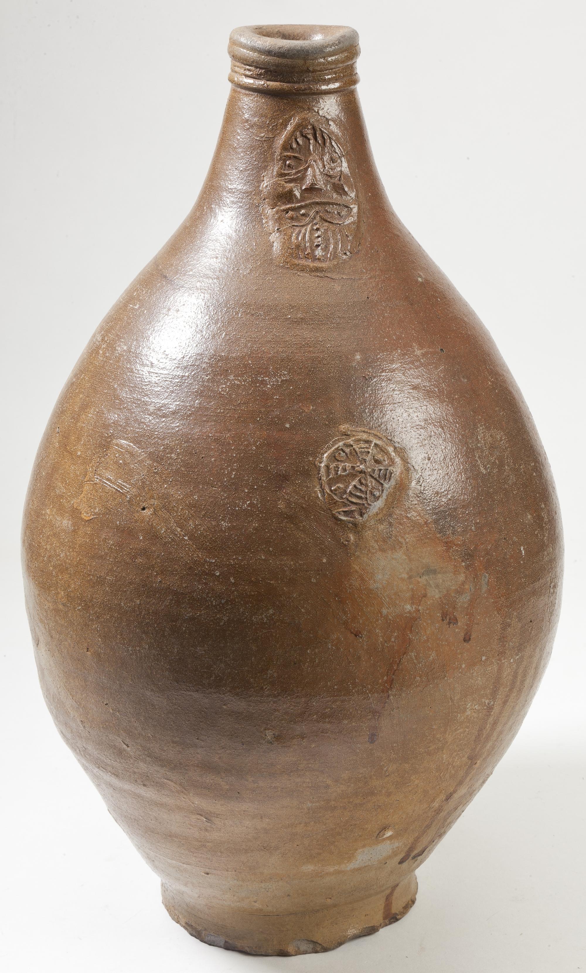 Feature description: Late type Bartmann jug Duingen typ, with one handle, a very flattened mask on the neck and a small, completely degraded rosette on the belly.