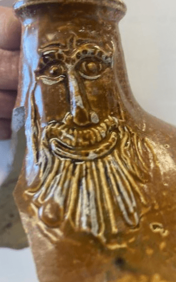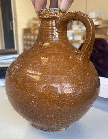 Notes: This Jug comes from a cellar on Rood Lane, excavated in 2008 -09 by MOLA. The cellar was likely sealed during the Great Fire of London in 1666. The findings made in it documented it to be part of an ale house (or tavern)