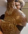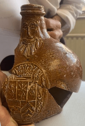 The jug is fragmented; however, it is preserved to its full dimensions. The medallion depicts the coat of arms of Jülich-Cleves-Berg